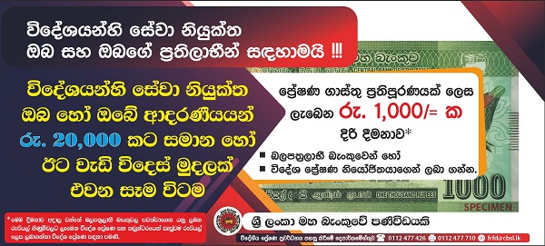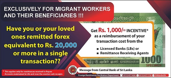 Central Bank of Sri Lanka has introduced a new incentive scheme exclusively for Sri Lankan migrant workers and their beneficiaries.
