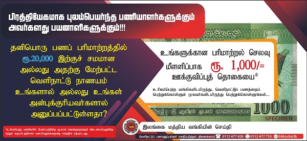 Issuing a notice, the CBSL said that an incentive of Rs. 1000 will be granted as reimbursement of the transaction cost.