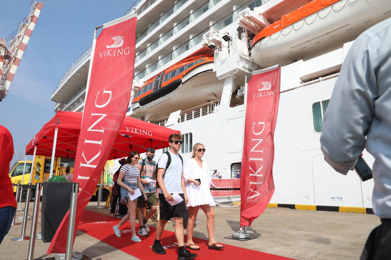 The Ministry of Tourism said that the luxury passenger cruise ship “Viking Mars” USA arrived at the Colombo port today with 900 passengers.
