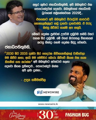 Speaking at a press briefing, Gammanpila said criminal charges would be filed against Dissanayake after the completion of his presidential term in 2029, alleging that the scale of the tragedy was the result of negligence at the highest level of government.“When you step down from the presidency in 2029, we will file criminal negligence cases against you without fail,” Gammanpila said. He claimed that evidence had already been gathered to support the allegations.